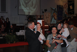 11/1: This evening we had our Baby Dedication at Ridgecrest Baptist Church. Nothing too formal. It was a ceremony presenting the children at church and expressing our gratitude to our Good Lord for every single one of our blessings! It was a beautiful ceremony and we are so pleased with our decision to do this!! Christy and Randy came with us and celebrated this special day with us!