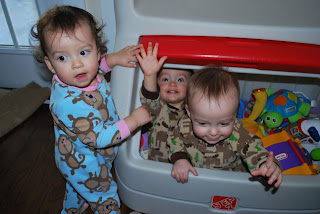 2/8:The boys LOVE to play in the toy box! They are always laughing and giggling! I love to hear them play! Emily also tries to get in the toy box with the boys!